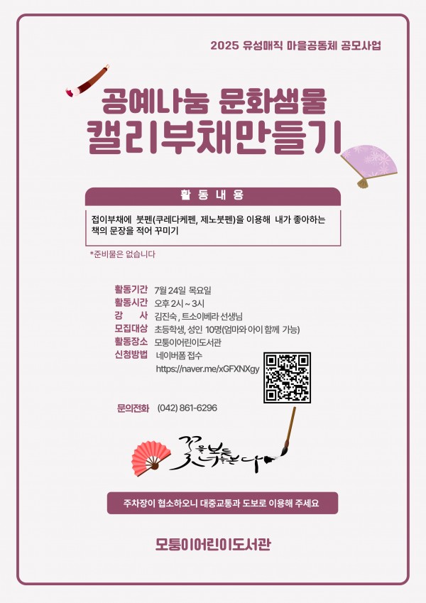 '캘리부채 만들기' 수업을 1회 진행합니다.
