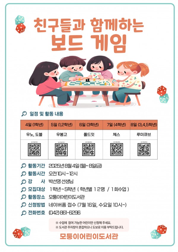 8월 4일(월)~8일(금)에 진행되는 보드게임 변동사항이 있습니다.