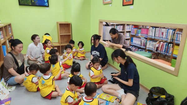 날씨가 너무 더워서일까요, 이용자가 없어 서가 정리를 하고 있던 차 엄마와 함께 온 초등학생 이용자와 함께 책을 읽고, 색종이로 토끼도 접어보고, 색을 조합 후 어떤 색이 되는지 퀴즈를 맞춰보는 활동을 해보았습니다. 영어를 잘하는 친구였지만 은방울꽃 선생님들이 읽어주는 그림책을 귀기울여 들어주고 만들기도 열심히 해주었답니다.