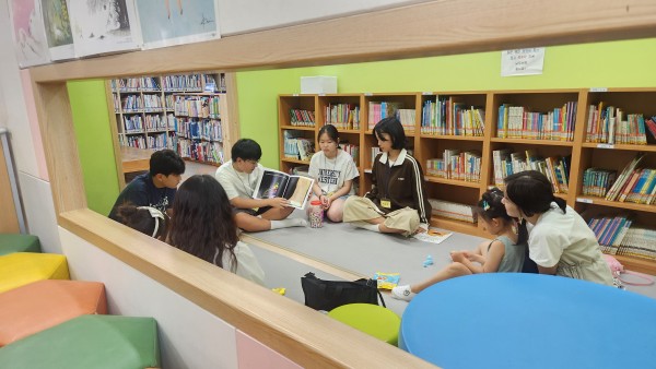 무더운 여름방학, 올해도 문지중학교 은방울꽃 학생들이 모퉁이에서 영어그림책 읽어주기 활동을 했습니다.