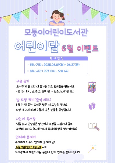 5월 어린이달 행사를 하지 못한 아쉬움을 달래고자 모퉁이 어린이달 6월 이벤트를 진행합니다.