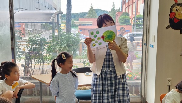 작가님께서 <연잎부침> 그림책을 직접 읽어주시며 시작하였습니다. 연못위에 피어있는 다양한 연잎을 보고 여름에 내리는 빗소리와 부침개 부치는 소리가 비슷하다는 것이 떠올라 연잎부침을 집필하게 되셨다고 합니다.